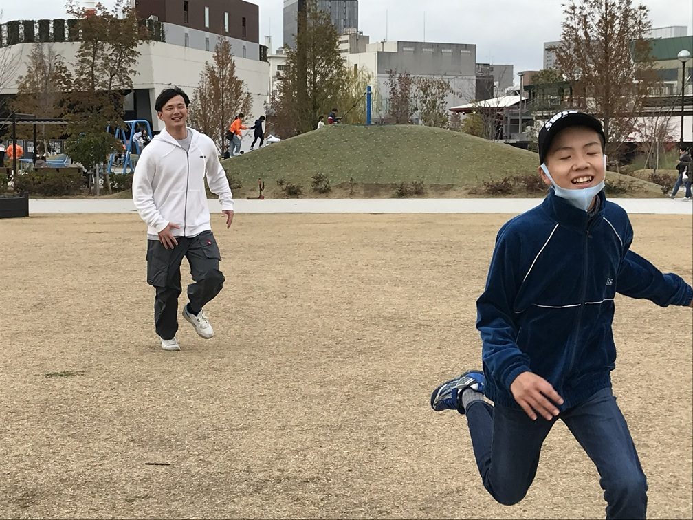 その後、子どもたちはお昼を済ませ、午後から隣接の「富士見公園」へ移動しました。そうしたら何とそこにまた石井監督はじめベイクレーンズ選手の皆さんが、着替えたあとにわざわざ遊びに来てくださいました。