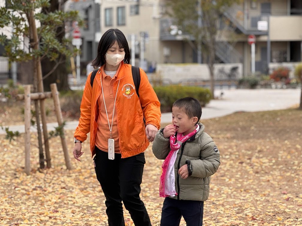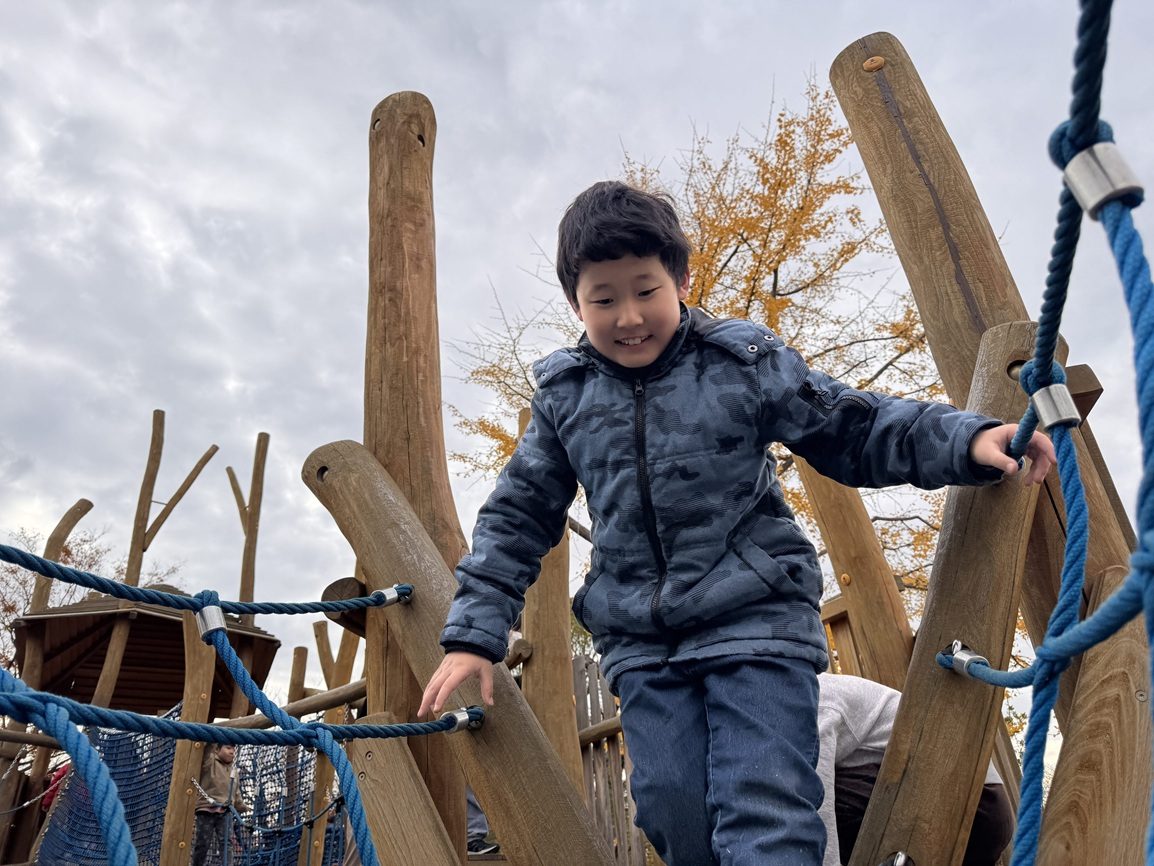 当日はお天気に恵まれ、きれいな青空のもと、暑くも寒くもないちょうどいい気候で、赤や黄色に色づいた木々の合間で、子どもたちはたっぷりと1時間以上自由時間で遊ぶことができました。