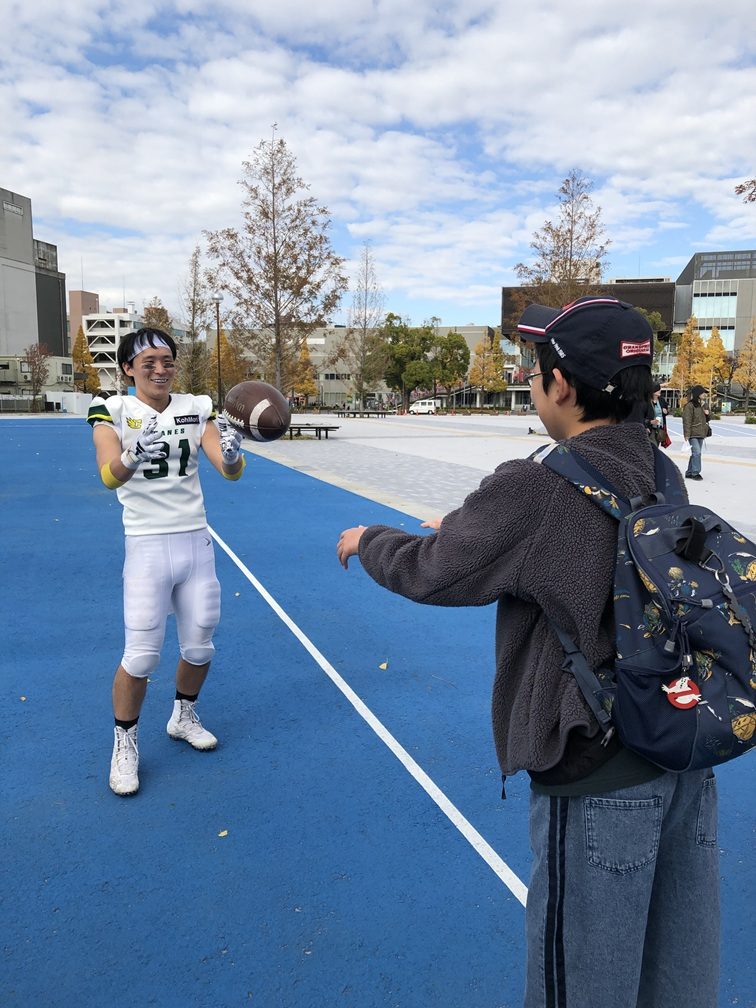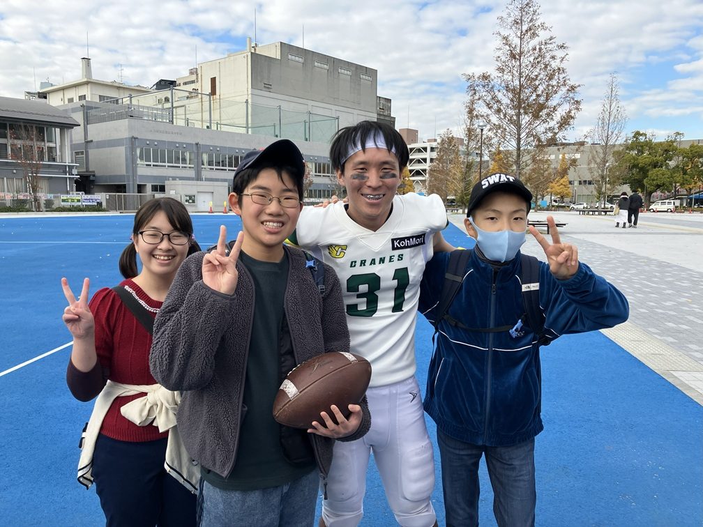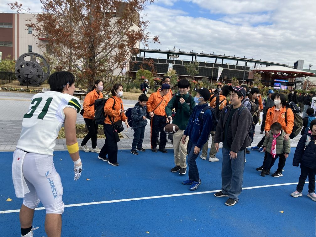 先週末の土曜日、くまさん横浜では朝から川崎の「富士通スタジアム川崎」まで遠出をする特別な遠足を実施しました。これは、くまさんが応援している社会人アメフトチーム「横浜ベイクレーンズ」の試合を応援に行くためです。