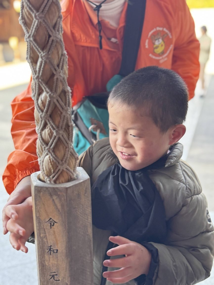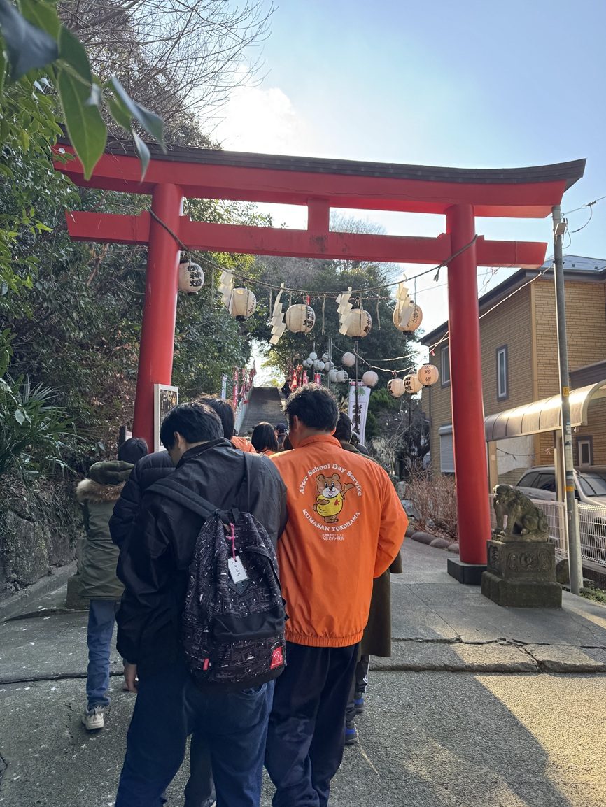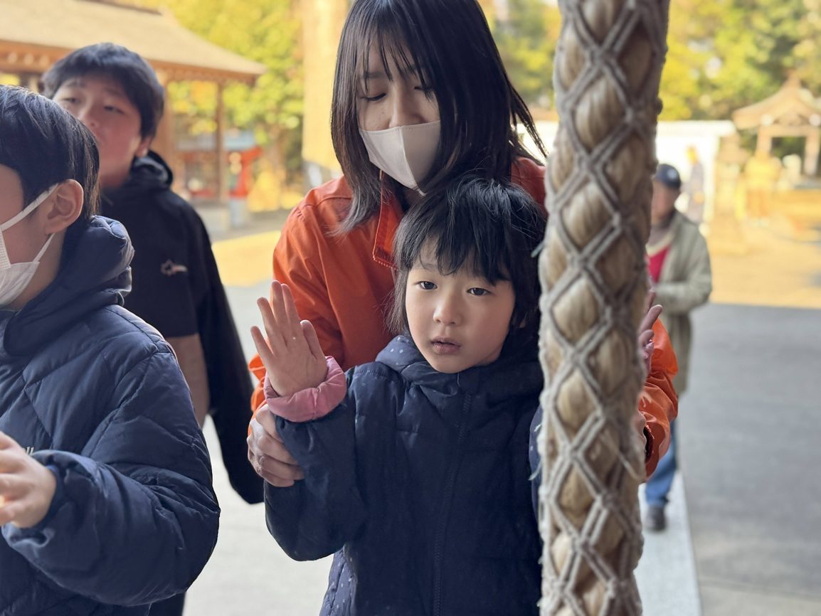 ふだん子どもたちはなかなか「神社」に行く機会がありません。多くの神社は木々でうっそうとした感じですが、かといって公園は違った荘厳な感じがします。日本の伝統的な文化施設である「神社」は参拝に行くのもまた一つの「お正月体験」とくまさんでは考えており、毎年一月には「初詣」を行っています。