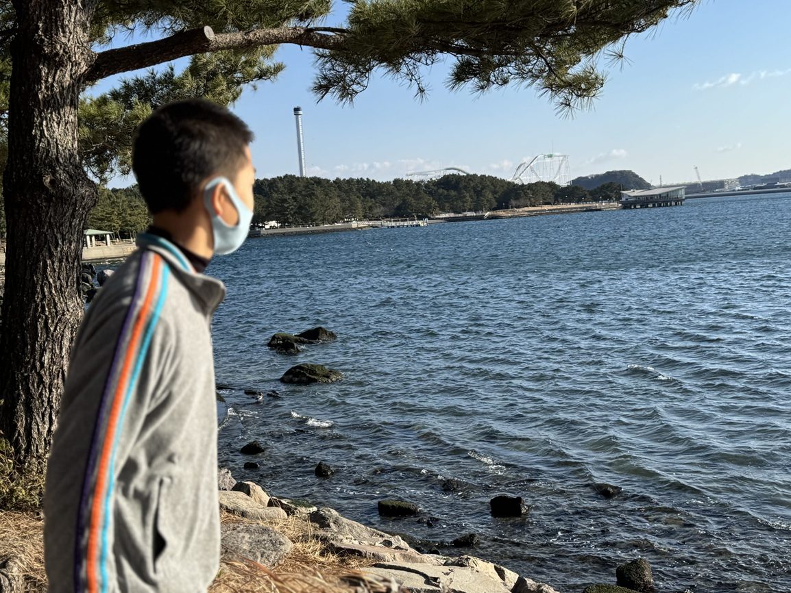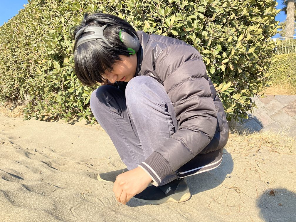 磯の歩道をゆっくりと散策し、海の景色を楽しむ子、レストハウス建物の屋上庭園に上がってシーサイドラインのモノレールが行き交う様子を眺める子、広い砂浜で砂絵を描くことに夢中になる子、レストハウスの中でゆっくりと休息を取る子・・・それぞれが自分のペースで、自分の興味のあることに取り組み、穏やかで充実した時間を過ごすことができました。