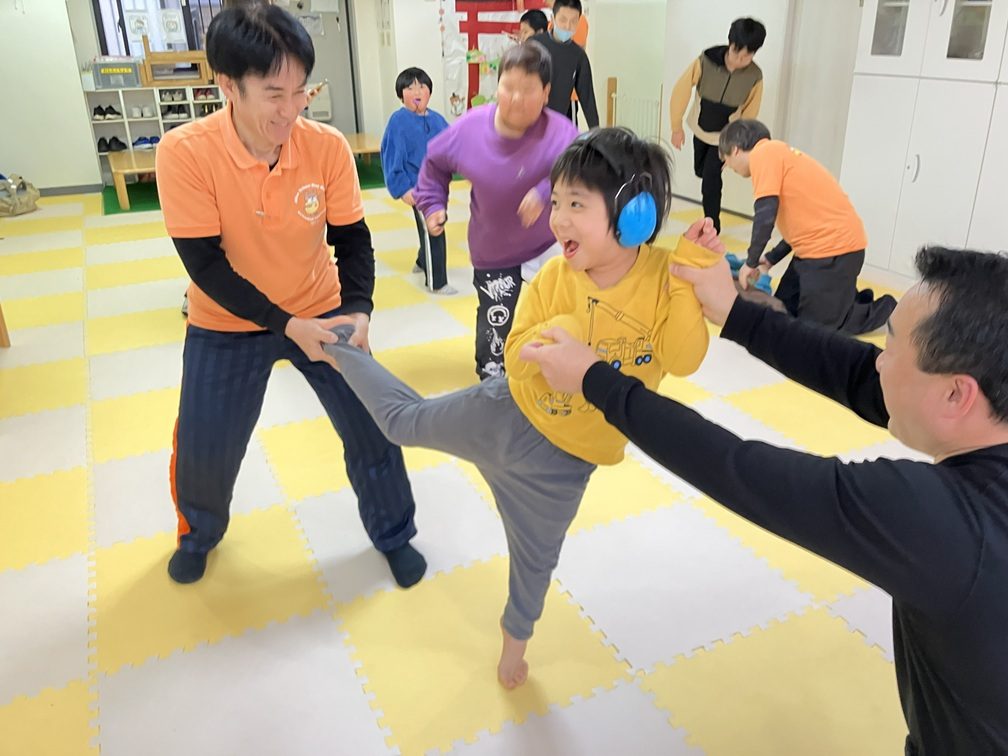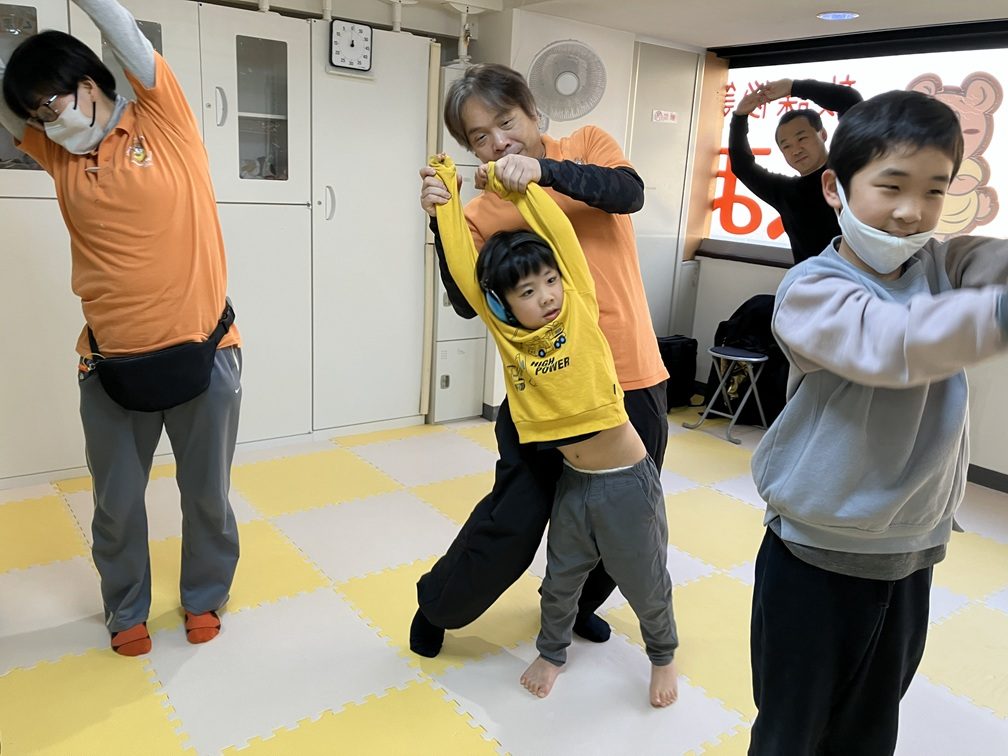 もちろん障害の有無に関わらず、子供の発達と成長に「運動」は欠かせない要素です。くまさん横浜でも子供のプログラムに「運動」を多く導入していますが、しかしながら、一般的な子供向けの体操や運動プログラムは、動作が複雑だったり、スピードが早すぎたりと、知的障害児たちにとっては難しいものが少なくありません。