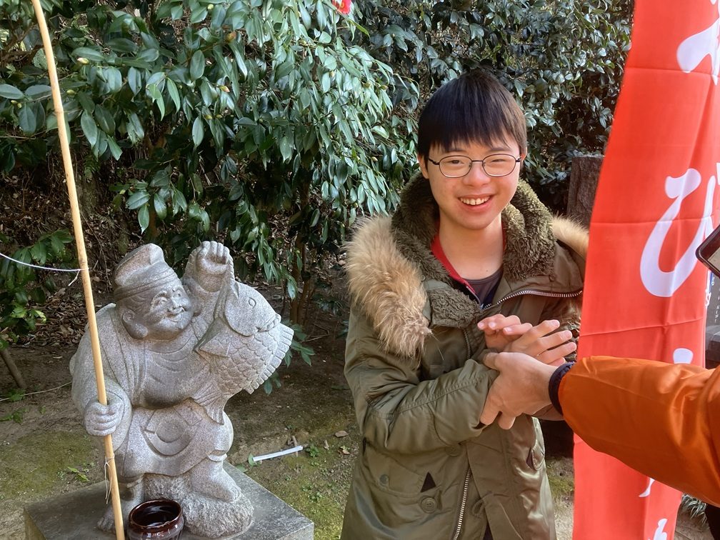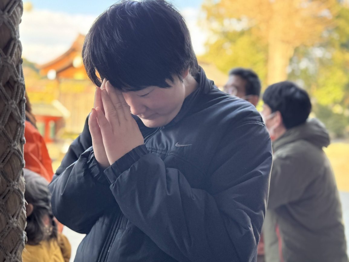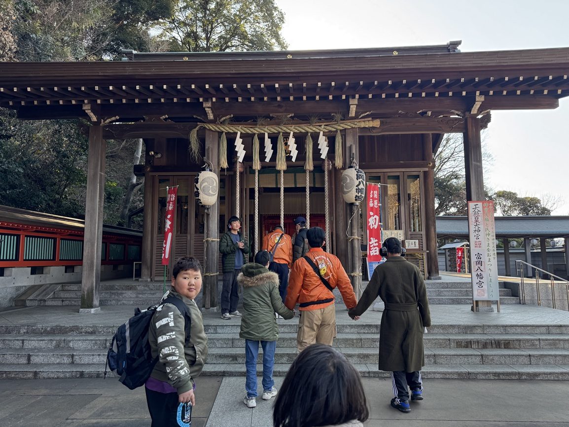拝殿の前に着くと綱を揺らして鈴を鳴らし、お作法である「二礼二拍手一礼」で参拝しました。1月も末に近づいたこの時期、初詣の人混みもすっかり落ち着いており、ゆったりと参拝することができました。静かな境内で、それぞれが新年の願いを込めてお祈りしました。