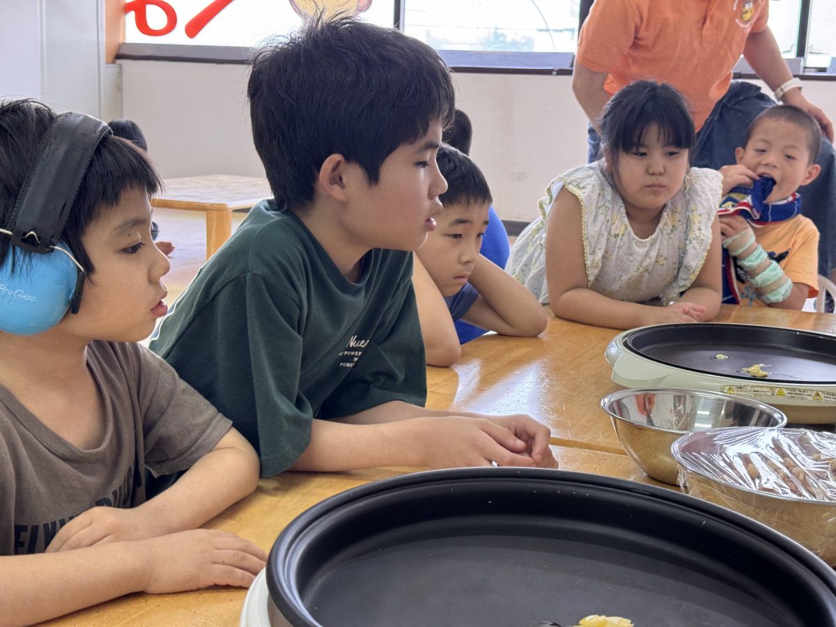 ふだんは子ども同士で楽しむ傘袋でのチャンバラですが、この日は特別です。大きな選手の皆さんがニコニコと真剣に(?)傘袋を持って子どもたちと打ち合う姿は、見ているだけでも微笑ましい楽しい時間でした。