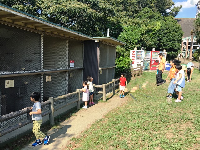 先日、逗子市の披露山公園にみんなで行きました。ここは、高台で眺めのよい公園で、ご覧のとおり、江ノ島や葉山マリーナ、天気が良いと伊豆大島や富士山まで湘南地域のすばらしい風景が一望できます。ミニ動物園も併設されていて、サルや孔雀、うさぎや亀などの小動物の檻もあって眺めることができます。