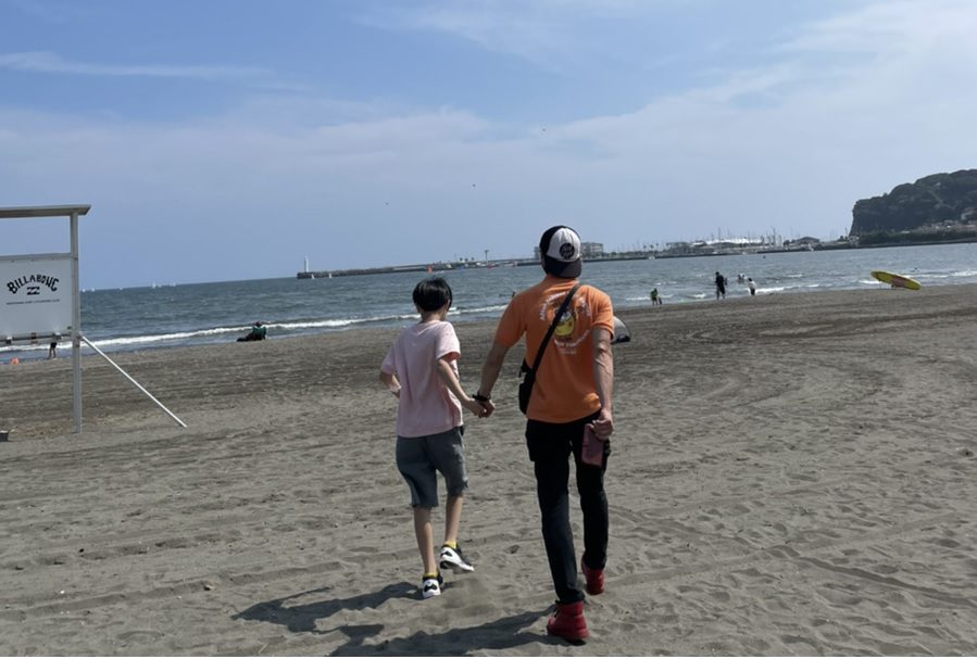 今日はお昼を食べたあとから出かけましたが、平日ということもあり海岸は空いており、子どもたちはみんな砂浜で裸足になりました。