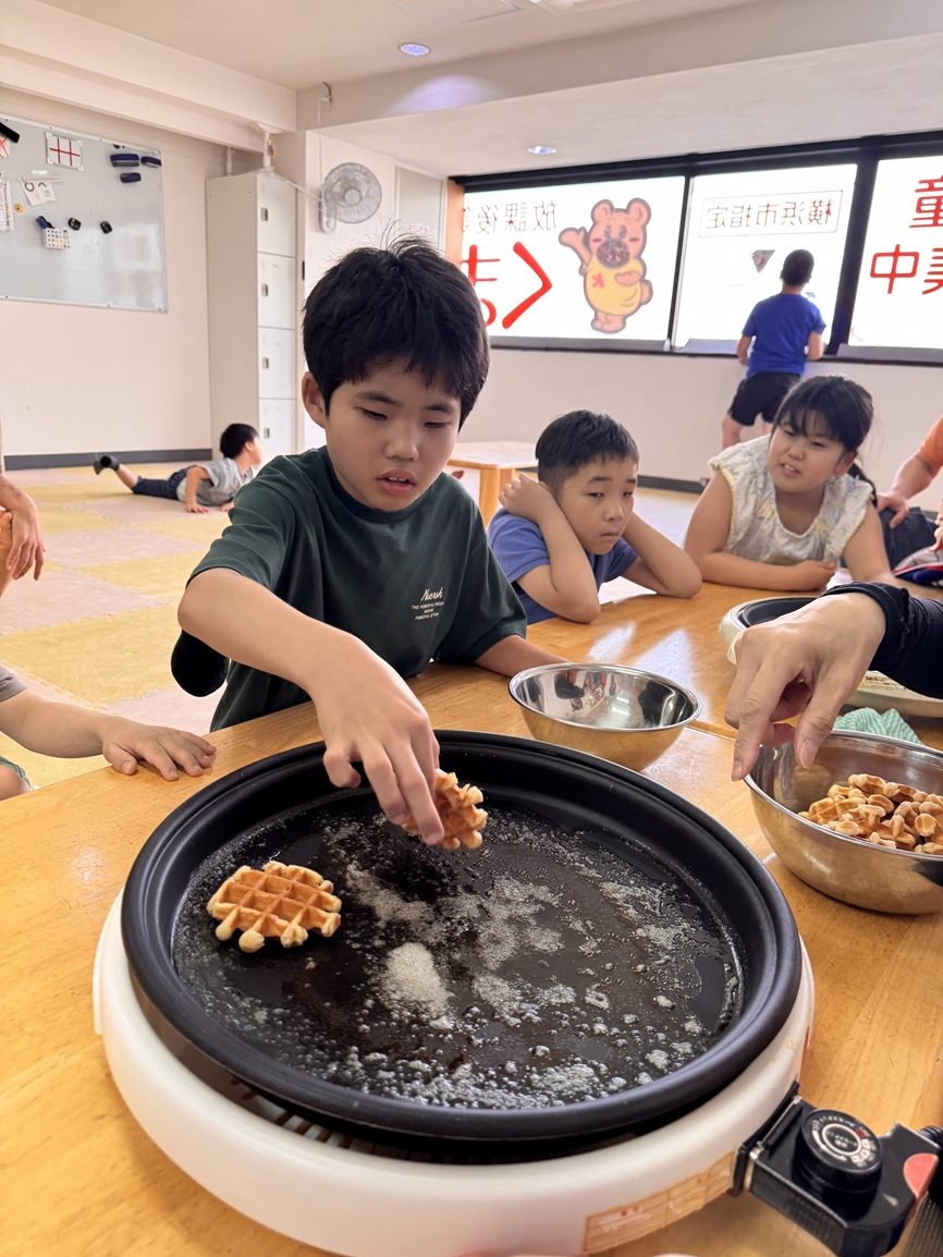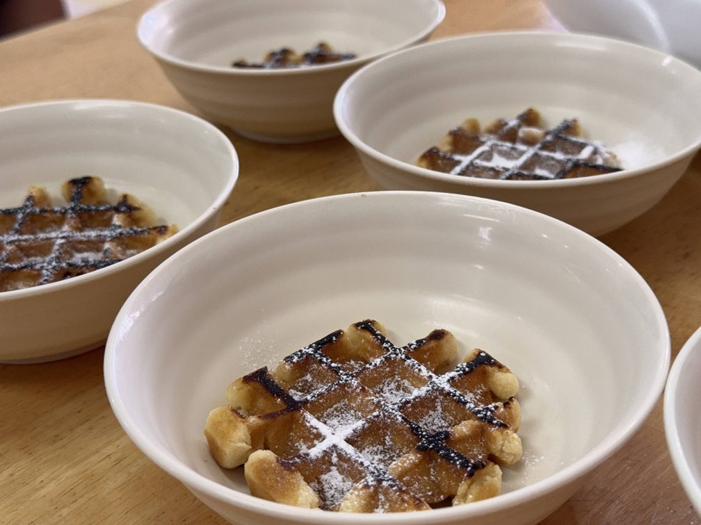 どちらのクラスでも、子どもたちは完成したワッフルを目を輝かせながら頬張り、あっという間にお腹に収まりました(笑)。