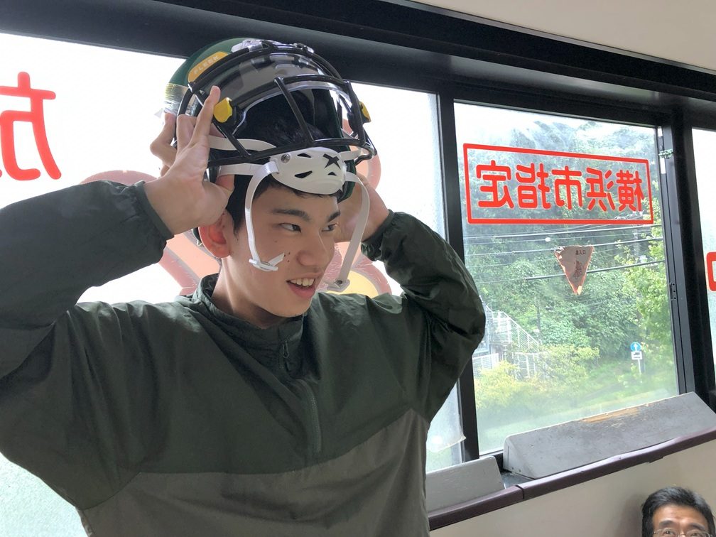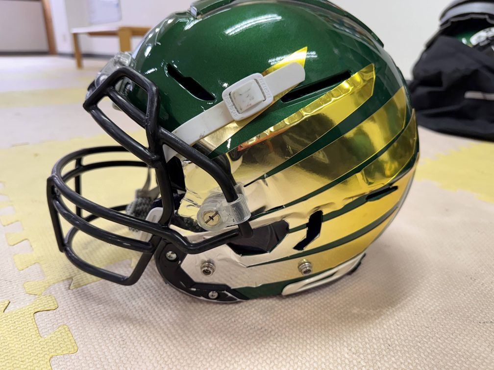筋肉隆々の大きな体の選手の方が特別なヘルメットや防具などを身に着けている姿は、動画の中から飛び出してきたようなかっこよさでした。そんなお兄さんたちと記念撮影をしたり、そのヘルメットや防具をつけさせてもらったりしました。防具をつけさせていただいた子たちは「おお! よく似合うね!」「かっこいい!」などとほめられていました。