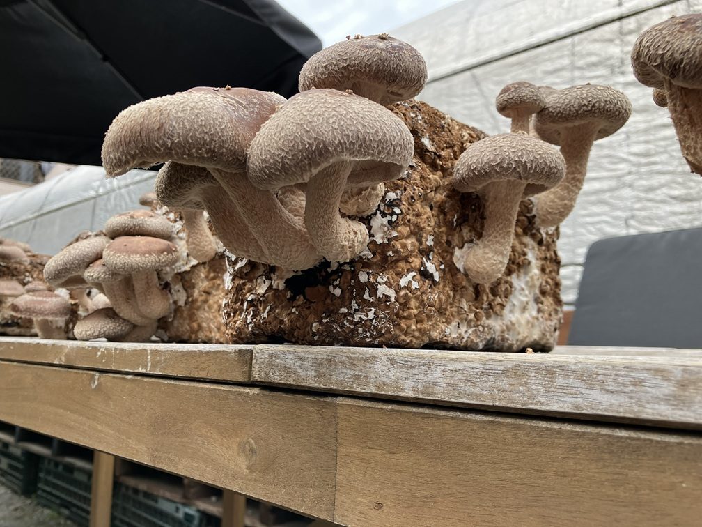 こちらの農園では原木ではなく「菌床」と呼ばれる、レンガ大のおがくずを固めたようなブロックに菌を植えたものでシイタケを栽培されています。