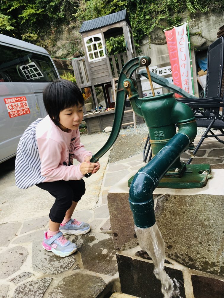 永島農園さんは、金沢区で代々500年以上続く歴史ある農家さんで、園内には手押しポンプの井戸や、防空壕として使われていた洞窟などもあり、子どもたちが珍しそうに園内のあちこちで遊ばせていただきました。