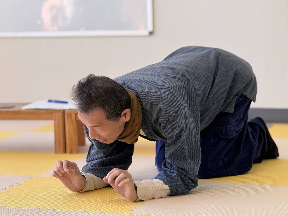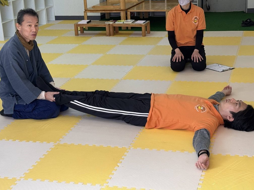 この日は「障害に身体(運動)からアプローチする」というくまさんの視点と考え方をあらためて再構成し、職員にとって有意義な一日でした。