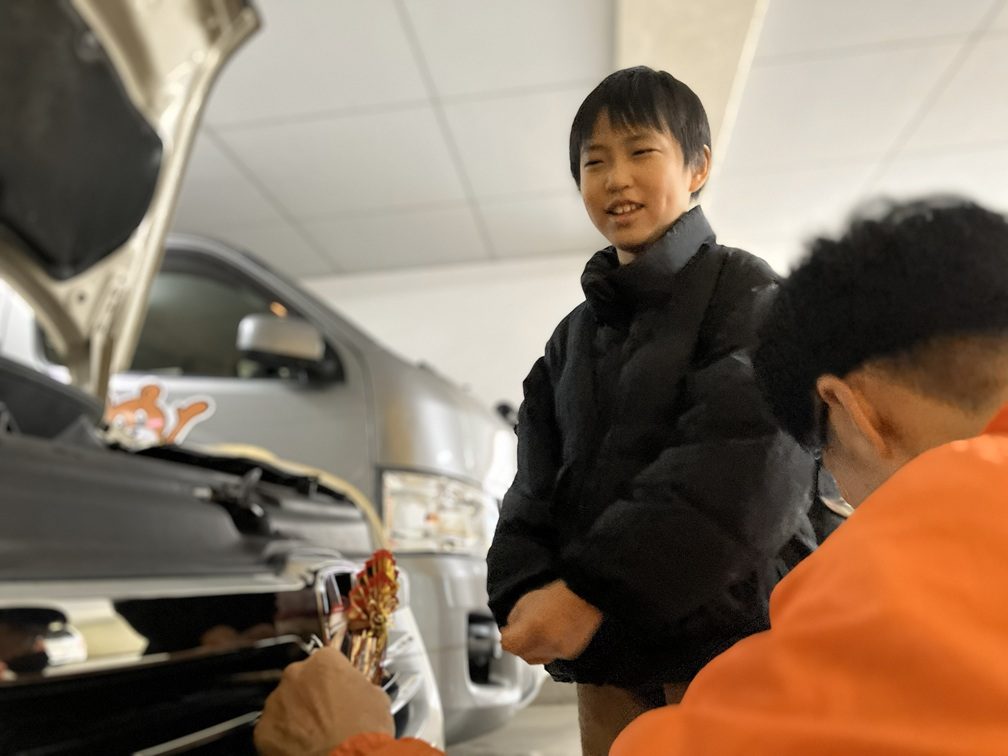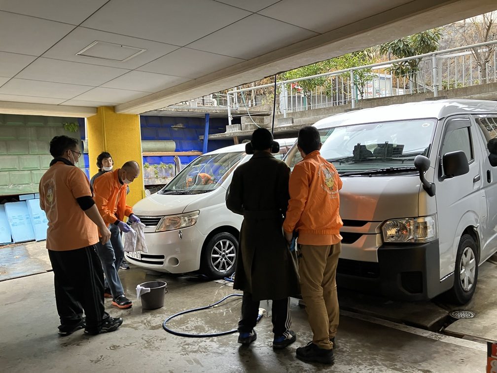 くまさん横浜の最終日は、子どもたちと一緒に送迎車や車庫を大掃除し、新年を迎える準備を行いました。
