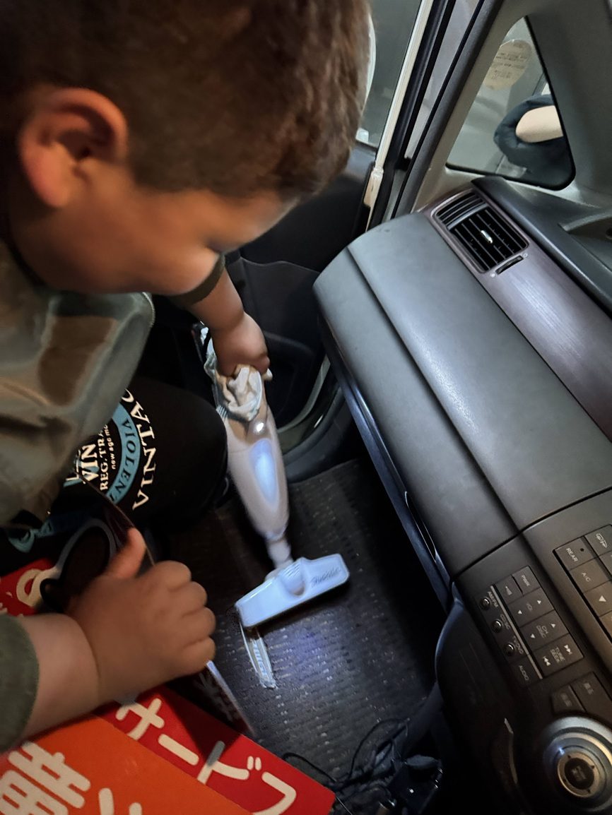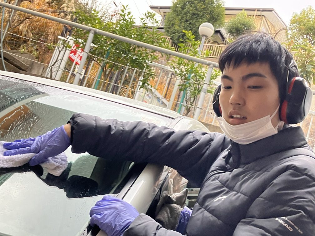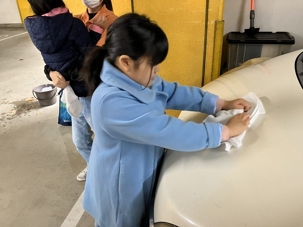 くまさん横浜には送迎車が4台あります。日頃から学校や自宅への送り迎えで乗り慣れている送迎車です。日頃の感謝を込めて心を込めて雑巾で水拭きし、車内には掃除機をかけました。