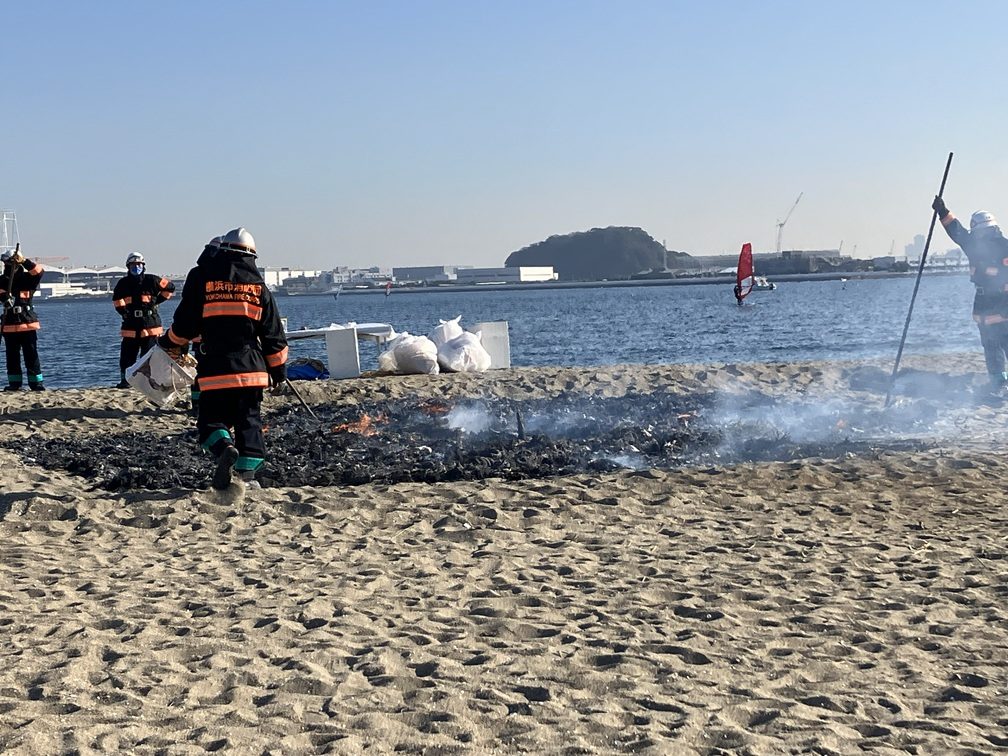 先週の土曜日に、みんなで金沢区の海の公園で行われた「どんど焼き」に参加してきました。