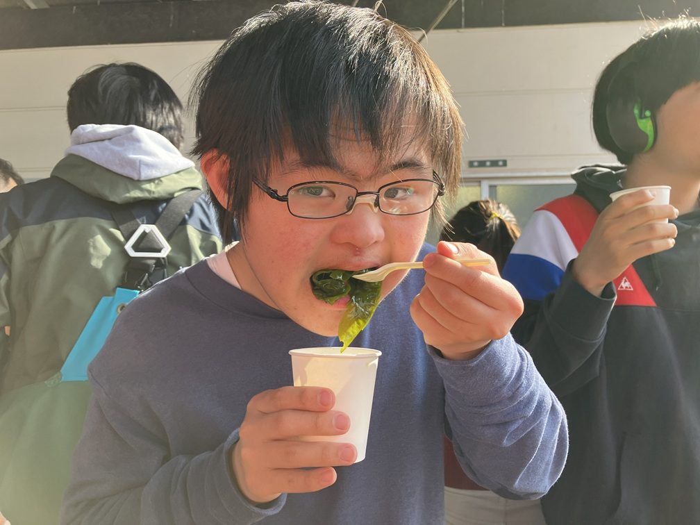 途中、ポン酢だけでなく「ごまドレッシング」「フレンチドレッシング」などで「味変」してもまた美味しく、子どもたちは夢中になって「ワカメのしゃぶしゃぶ」に舌鼓を打ち、お腹いっぱいいただきました。