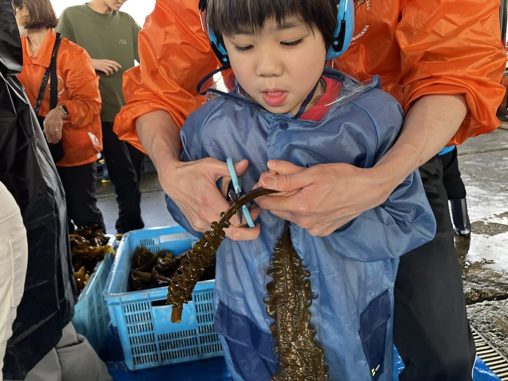 ところが当日の朝に漁師さんたちが海の様子を見てくださったところ、コンブが不漁とのこと。急きょ「ワカメの収穫」に変更となりました。