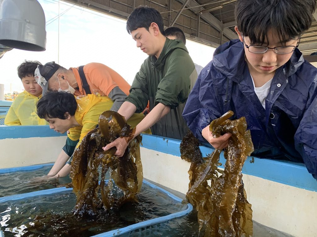 【金沢漁港でワカメの収穫体験遠足】