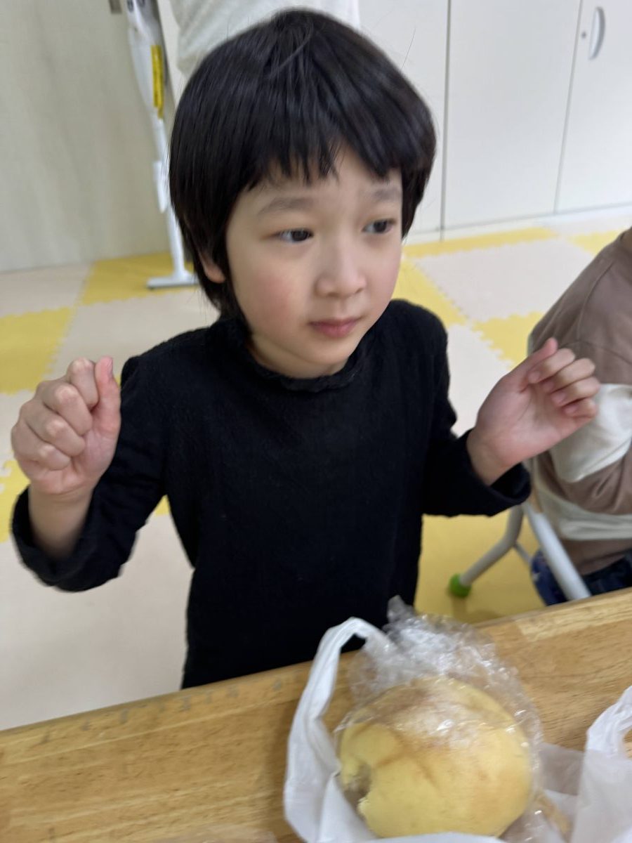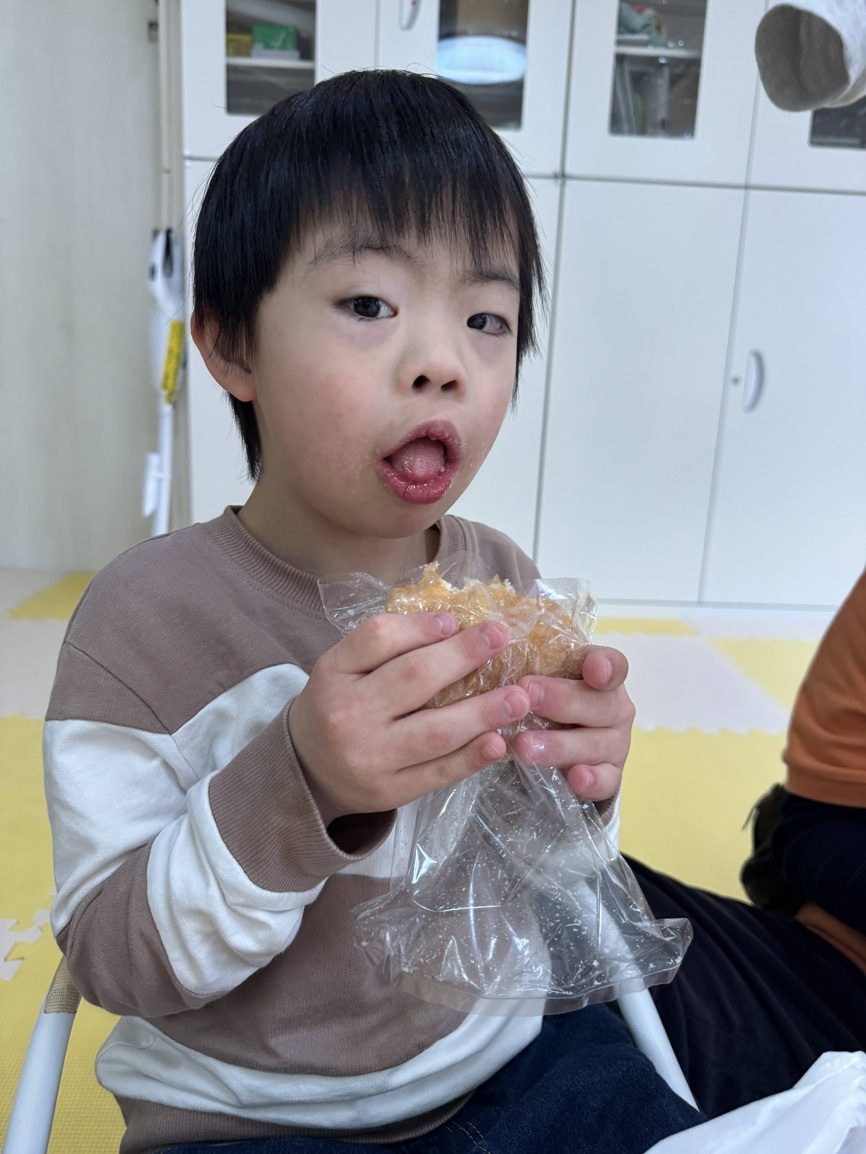 ですからこうして、お店の方からくまさんに来ていただけるシステムはとてもありがたいのです。しかもそれを買ってそのままお昼で食べられます。子どもたちも「今買ったものをすぐ食べる」ことでおぼろげながらに「買い物」の意味を感じてもらいやすくなります。