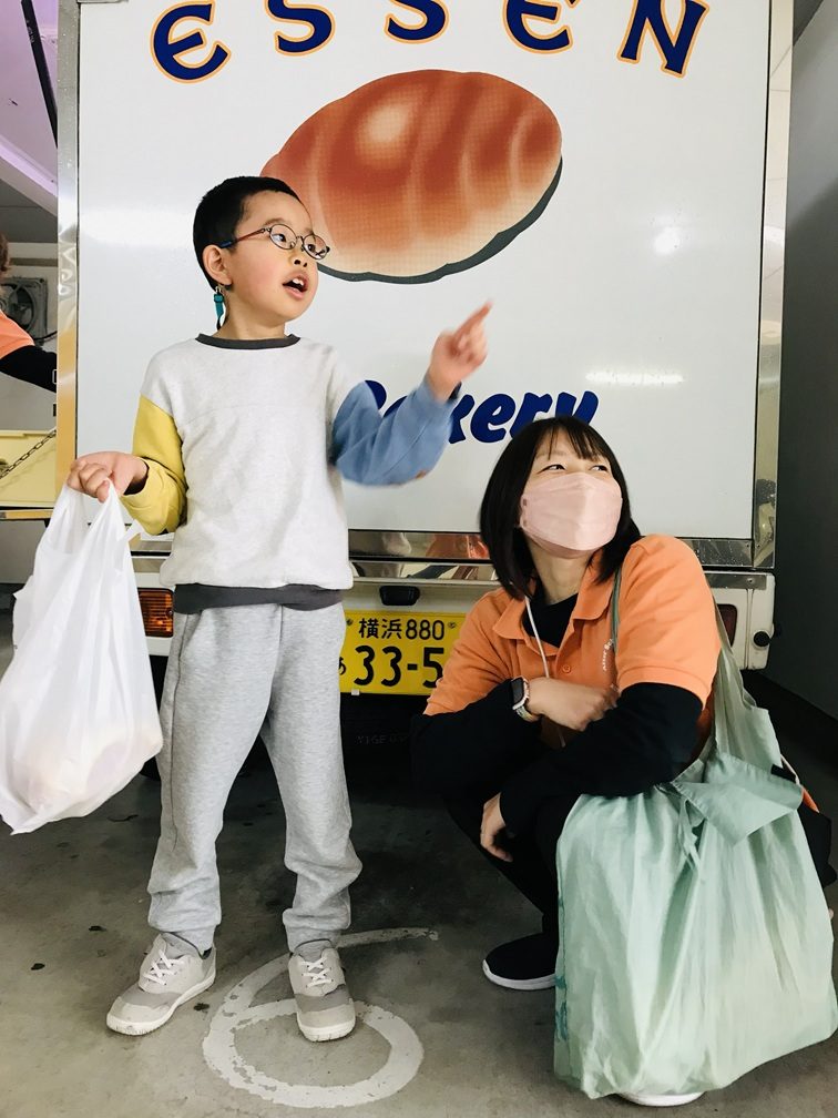 くまさん横浜では春休みに、移動販売のパン屋さんをお迎えし、子どもたちが「お買い物活動」を行いました。